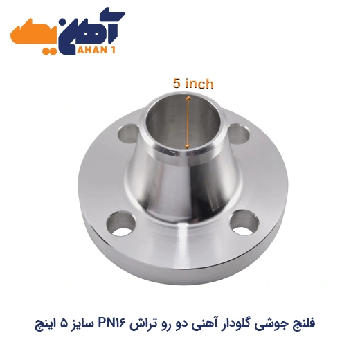 فلنج جوشی گلودار آهنی دو رو تراش PN16 سایز ۵ اینچ
